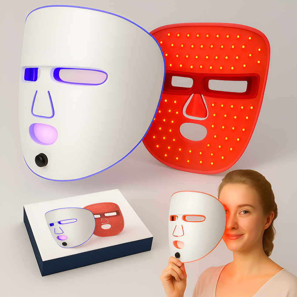 CelestiGlow uses red (620nm), near-infrared (850nm), and optional blue (460nm) LED light therapy to penetrate the skin at different depths. It stimulates collagen production, improves circulation, calms inflammation, and kills acne-causing bacteria — all without pain or downtime.
